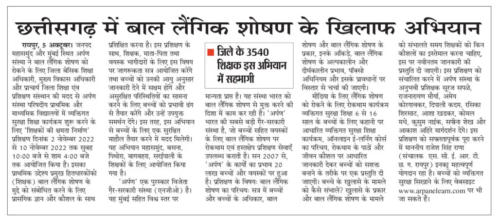 छत्तीसगढ़ में बाल लैंगिक शोषण के खिलाफ अभियान