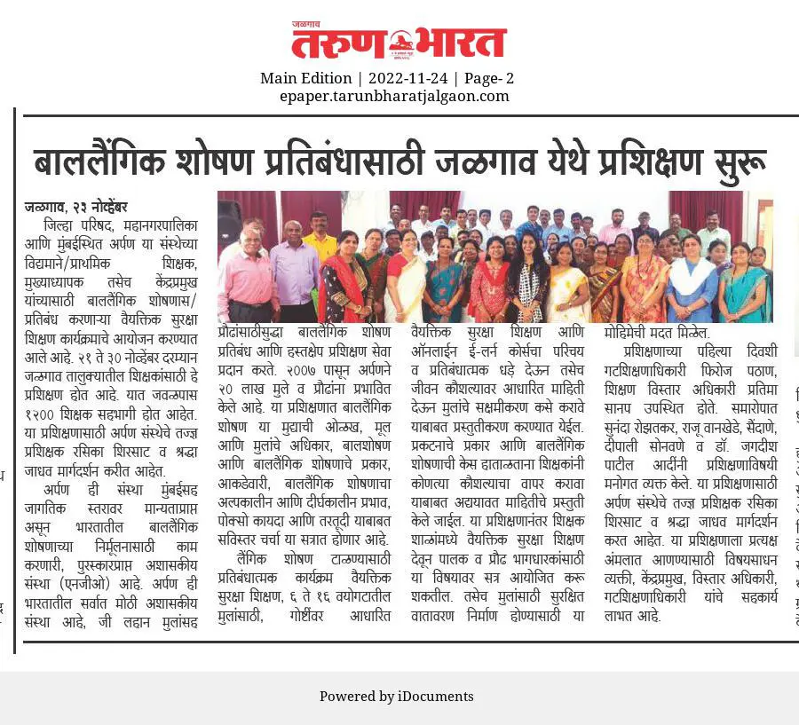 बाल लैंगिक शोषण प्रतिबंधासाठी जळगाव येथे प्रशिक्षण सुरू