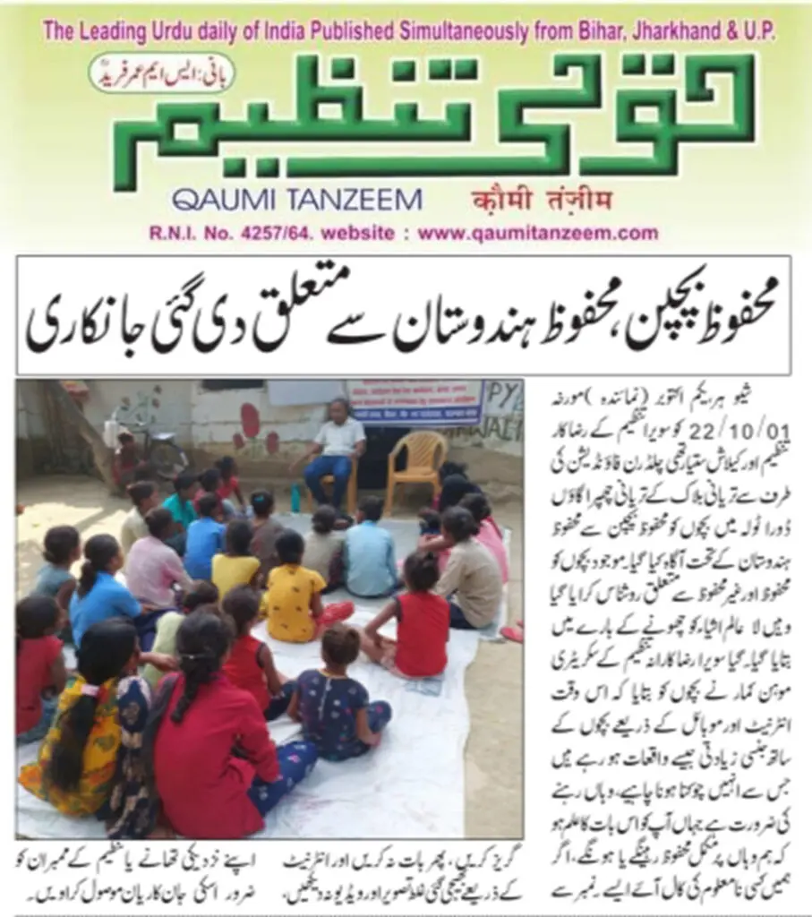 महफूज़ बचपन, महफूज़ हिंदुस्तान से मुतालिक दी गयी जानकारी